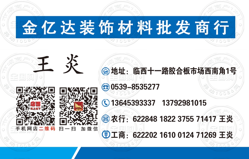 临沂金亿达装饰材料批发商行名片-13645393337