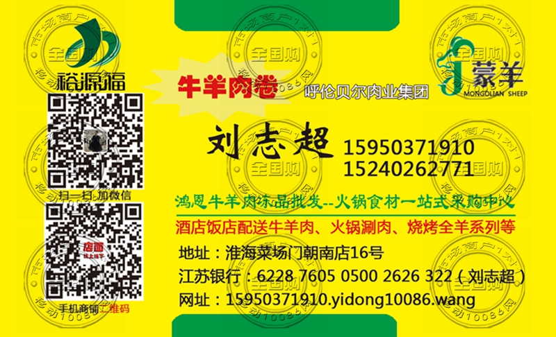淮安鸿恩牛羊肉冻品批发名片-15950371910