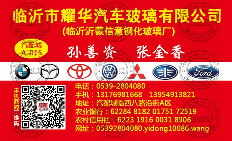 临沂市耀华汽车玻璃有限公司名片-13954913821