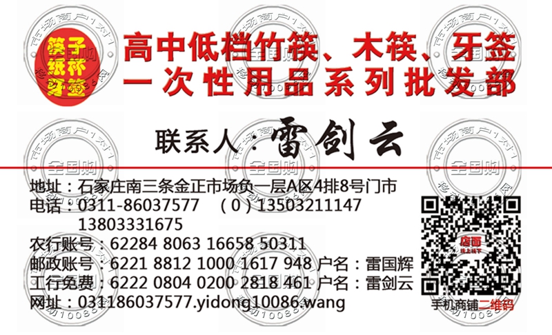 石家庄筷子 纸杯 牙签名片-13503211147