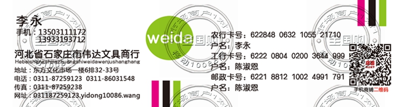 石家庄市伟达文具商行名片-13503111172