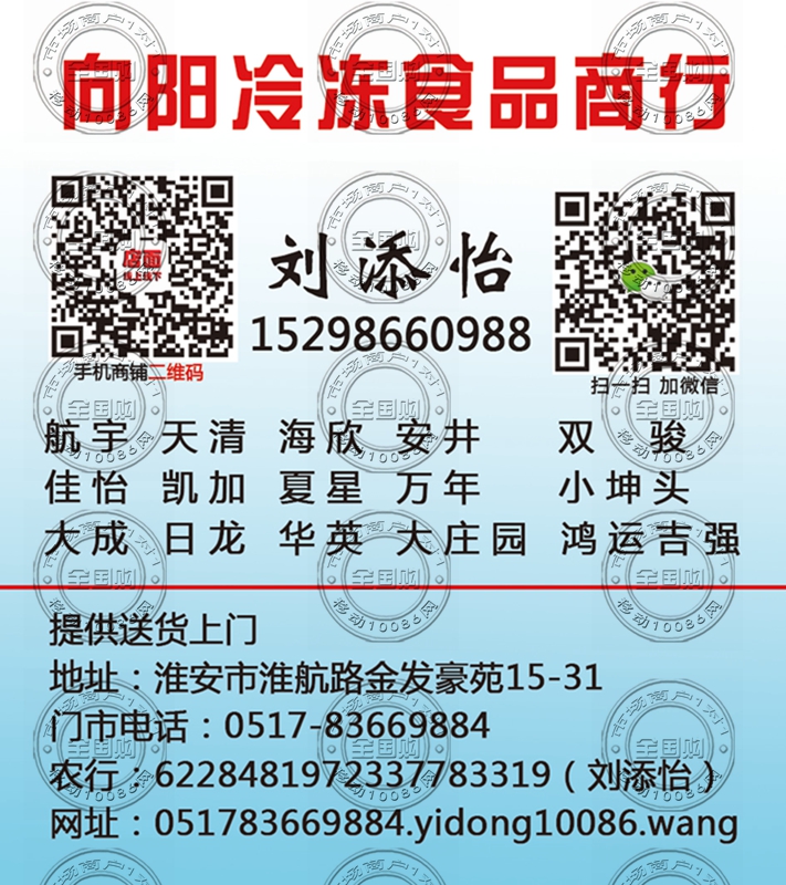 淮安向阳冷冻食品商行名片-15298660988
