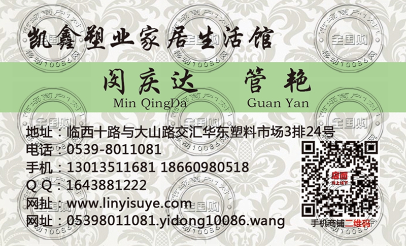 临沂凯鑫塑业家居生活馆名片-13013511681