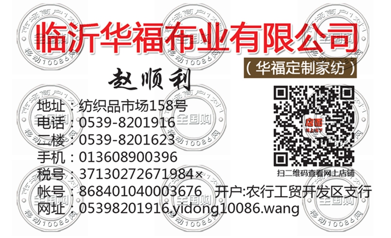 临沂华福布业有限公司名片-13608900396