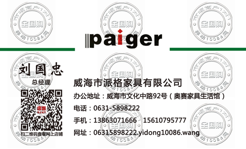 威海市派格家具有限公司名片-13863071666