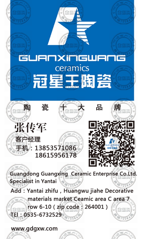 广东冠星陶瓷企业有限公司烟台专营店名片-13853571086
