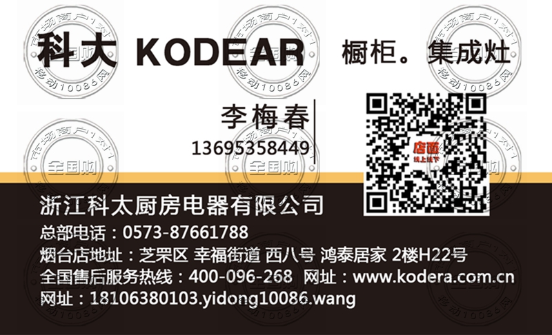 烟台科大集成灶橱柜名片-15345350103