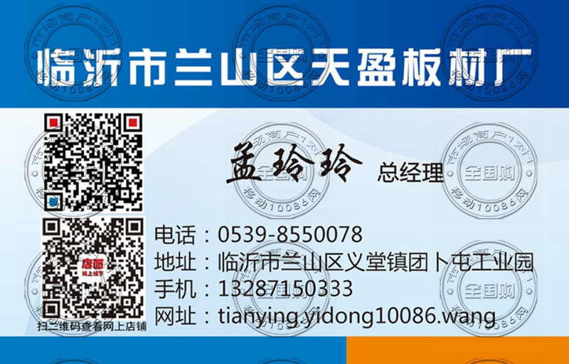 临沂市兰山区天盈板材厂名片-13671595655