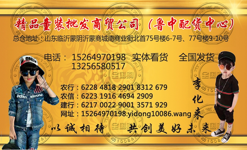 蒙阴精品童装批发商贸公司名片-13256580517