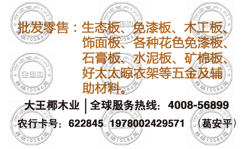 大王椰木业连锁淮安区总经销名片-13505230035