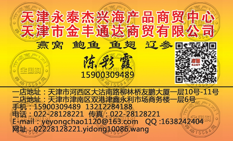 天津永泰杰兴海产品商贸中心名片-15900309489
