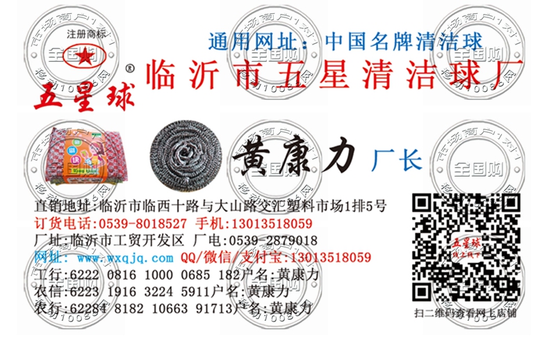 山东临沂五星清洁球厂名片-13013518059