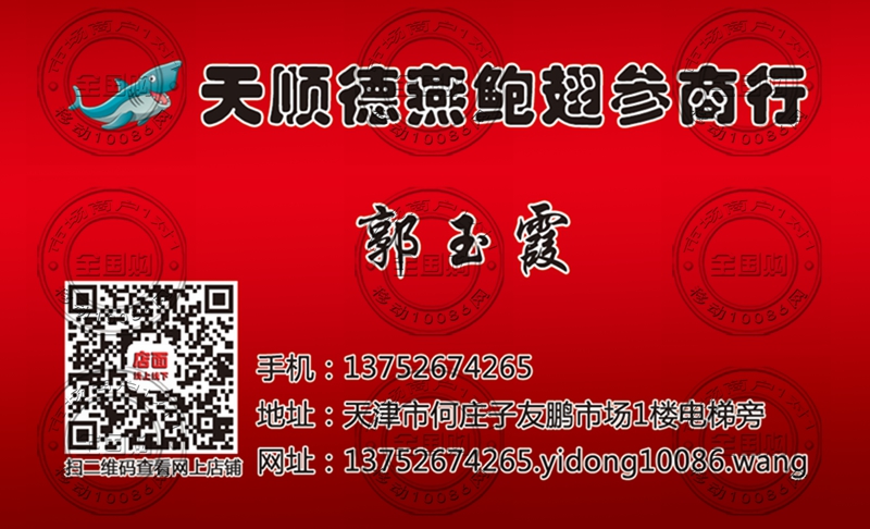 天津天顺德燕鲍翅商行名片-13752674265