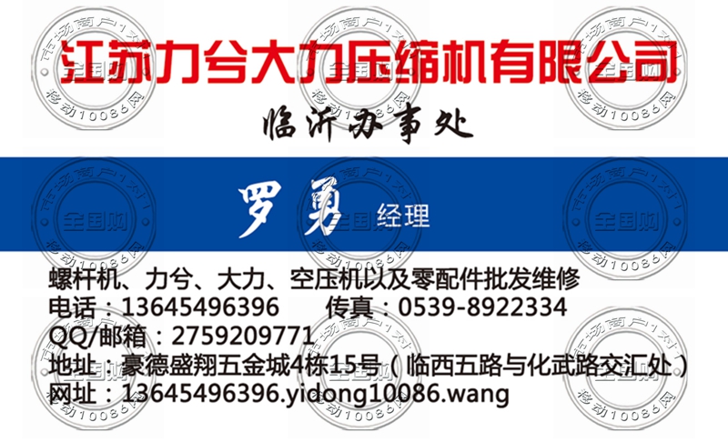 江苏力兮大力压缩机有限公司临沂办名片-13645496396