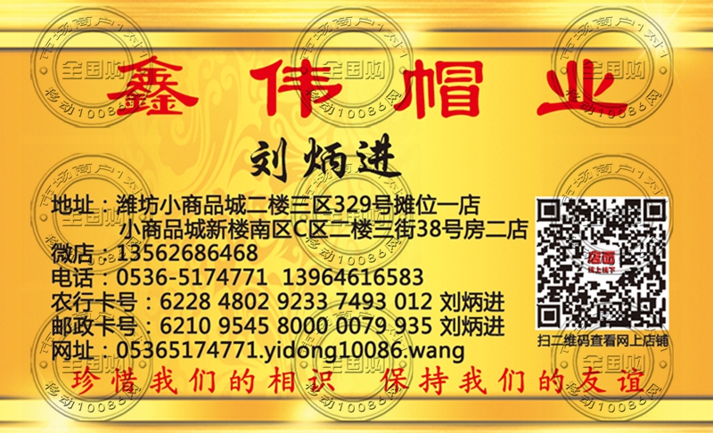 潍坊鑫伟帽业名片-13562686468