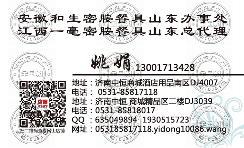 安徽和生密胺餐具山东办事处名片-13001713428