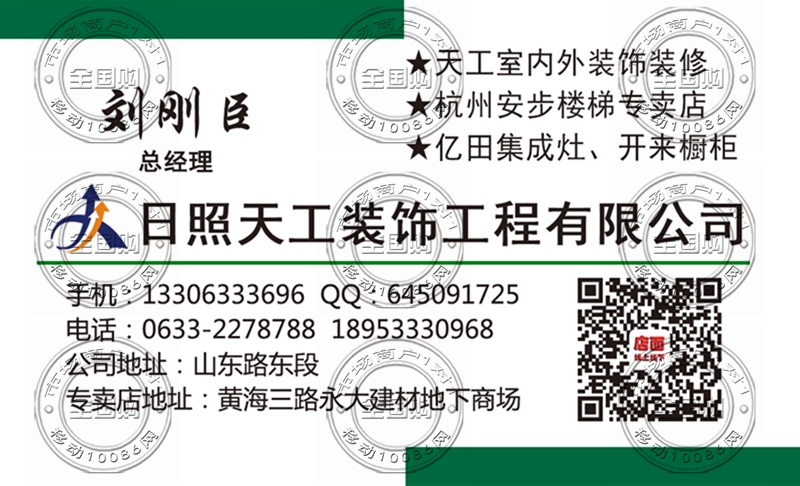日照天工室内外装饰装修名片-13306333696