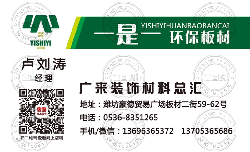 一是一板材日照地区总代理名片-18300336086