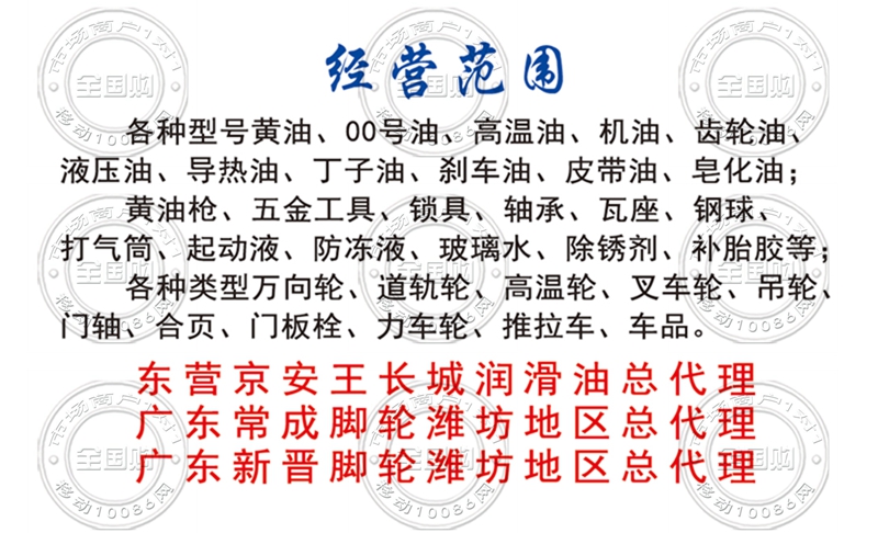 潍坊东金润滑油锁具万向轮总汇名片-13791899092