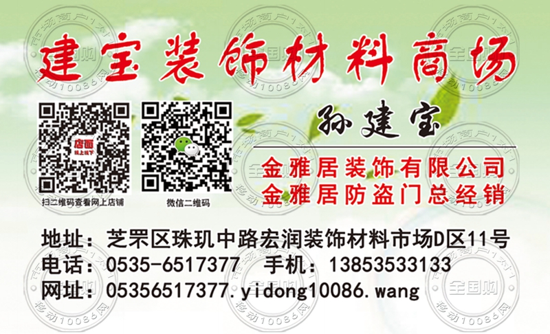 烟台建宝装饰材料商场名片-13853533133