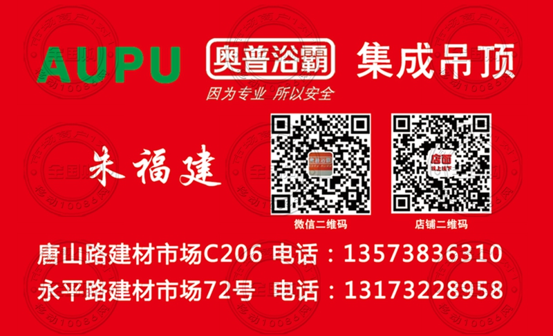 青岛奥普浴霸集成吊顶名片-13573836310