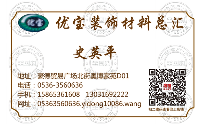 潍坊优宝装饰材料总汇名片-15865361608