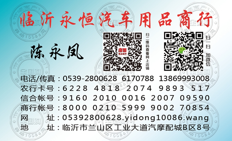 临沂永恒汽车用品商行名片-13869993008