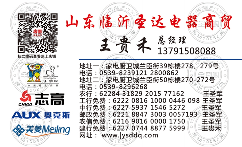 山东临沂圣达电器商贸名片-13791508088