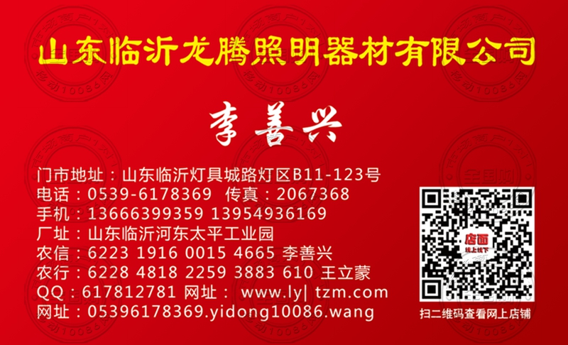 山东临沂龙腾照明器材有限公司 名片-13666399359