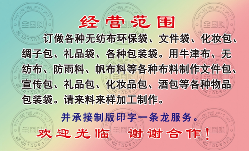 潍坊专业订制无纺布环保袋名片-13863608976