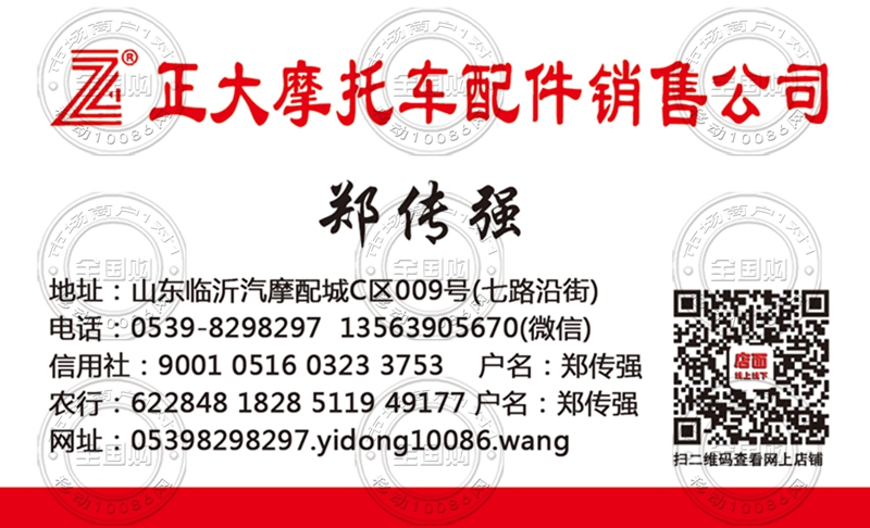 临沂正大摩托车配件销售公司名片-13563905670
