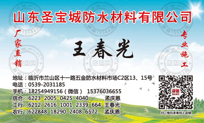 山东圣宝城防水材料有限公司名片-18254949156