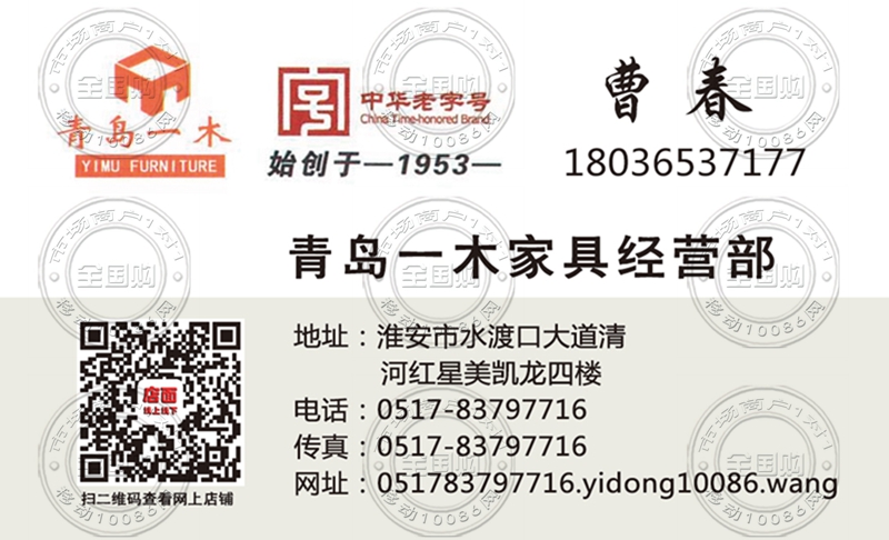 青岛一木家具淮安经营部名片-18036537177