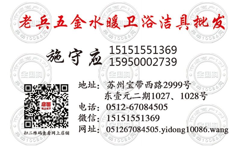 苏州老兵五金水暖卫浴洁具批发名片-15151551369