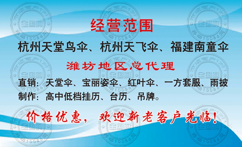 潍坊天成雨具挂历总汇名片-13563657857