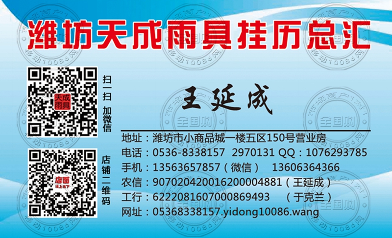 潍坊天成雨具挂历总汇名片-13563657857