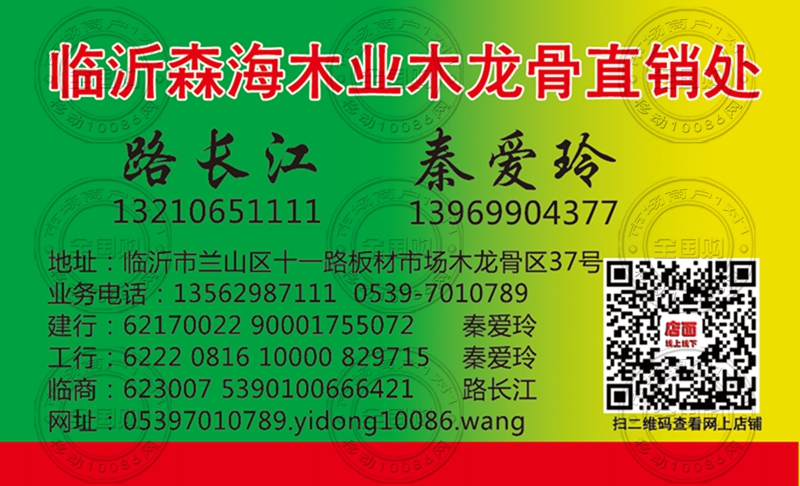 临沂森海木业木龙骨直销处名片-13562987111