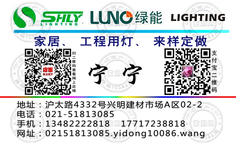 上海家居、 工程用灯、 来样定做名片-13482222818