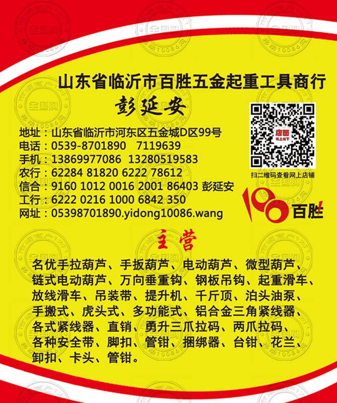 山东省临沂市百胜五金起重工具商行名片-13869977086