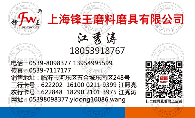 上海锋王磨料磨具有限公司名片-18053918767
