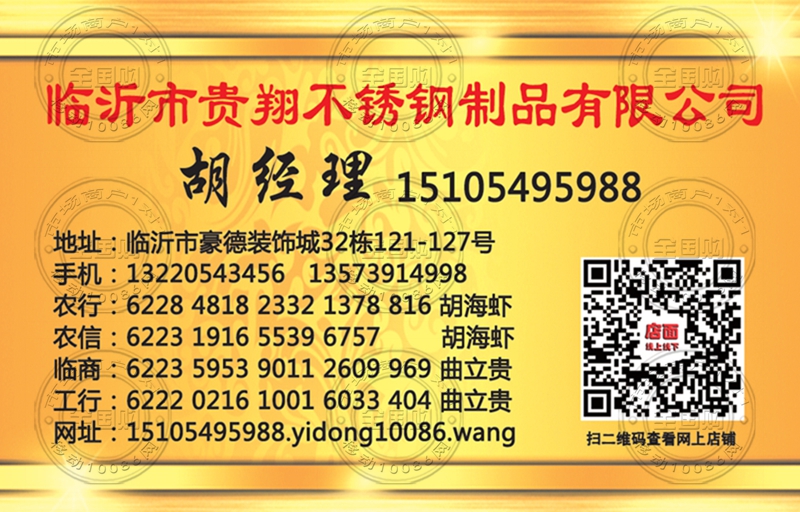 临沂市贵翔不锈钢制品有限公司 名片-15105495988