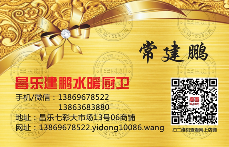 潍坊昌乐建鹏水暖厨卫名片-13863683880