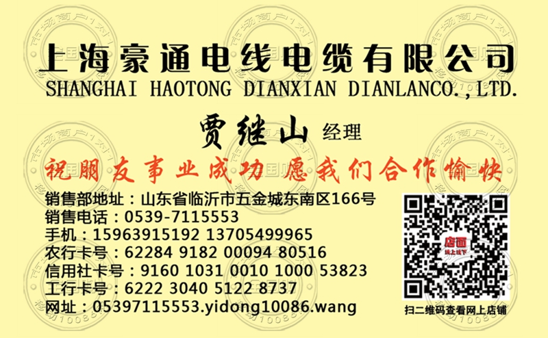 上海豪通电线电缆有限公司名片-15963915192