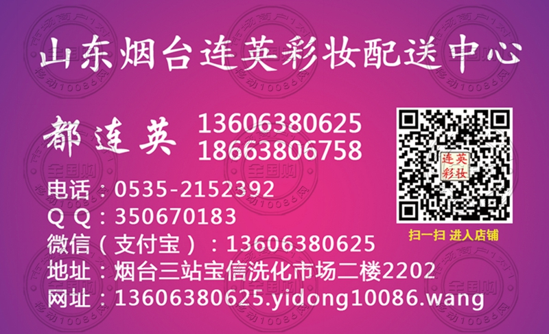 烟台连英彩妆配送中心名片-13606380625