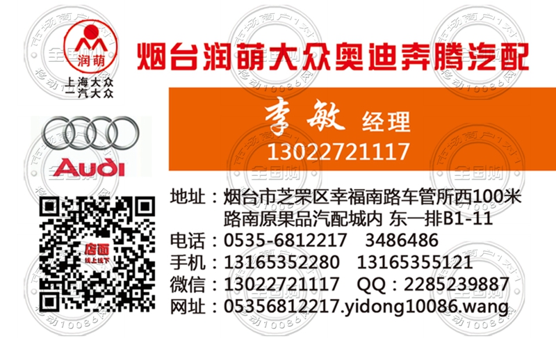 烟台润萌大众奥迪奔腾汽配名片-13022721117