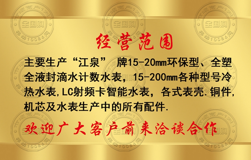 山东金垄水表有限公司名片-13583973556
