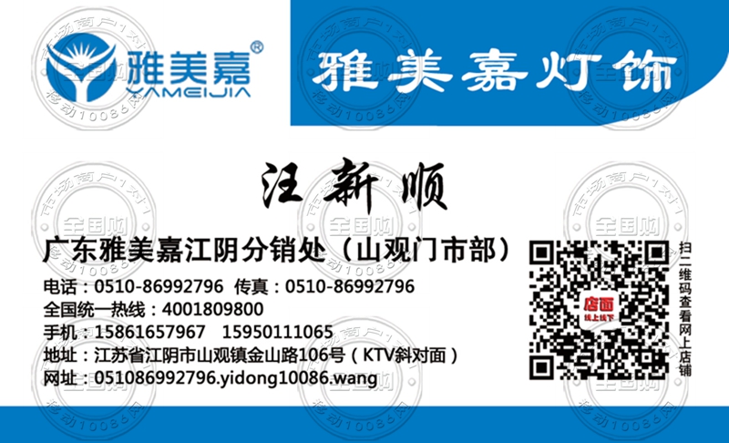 广东雅美嘉江阴分销处(山观门市部)名片-15950111065