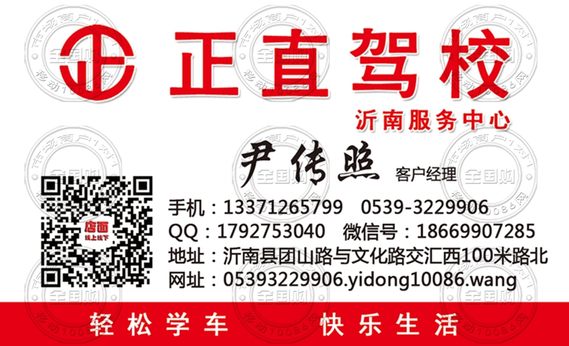 正直驾校沂南服务中心名片-13371265799