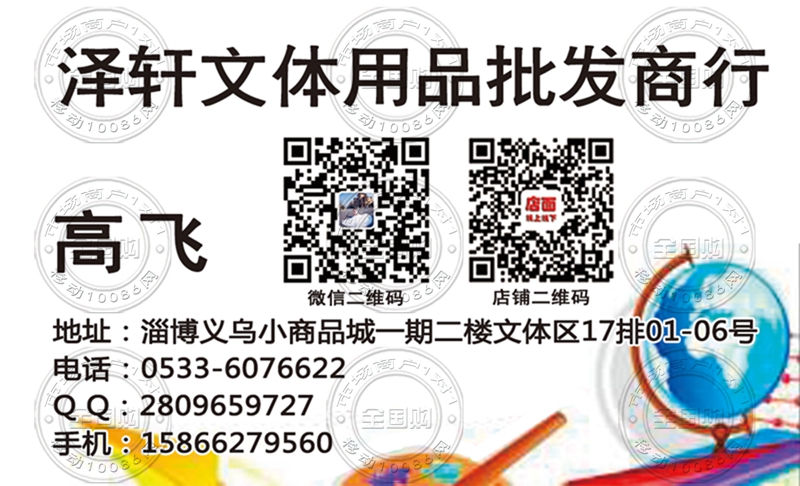淄博泽轩文体用品批发商行名片-15866279560