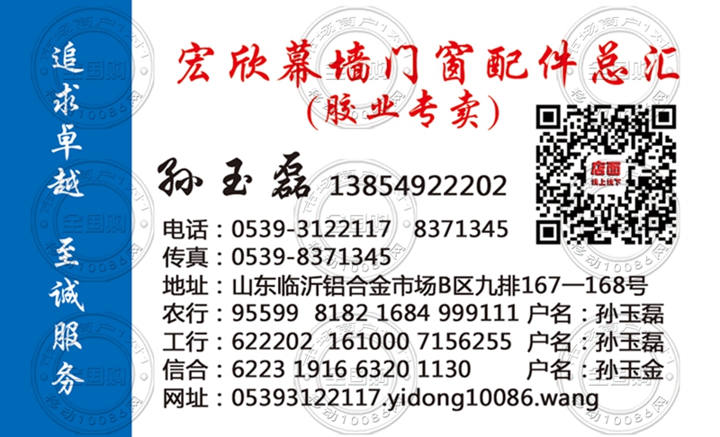 临沂宏欣幕墙门窗配件总汇名片-13854922202